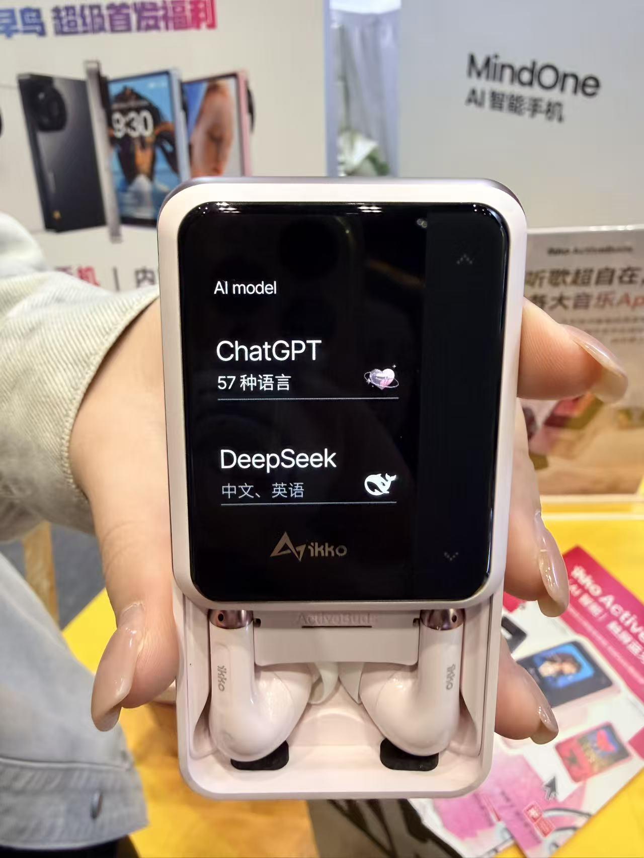 此外,AI数字调香设备吸引大量参观者。用户输入“场景+心情”关键词后,AI可生成个性化香型方案。工作人员表示,未来计划将调香能力作为解决方案售卖给景区、展览馆等B端客户。而售价1899元的iKKo AI耳机内置ChatGPT与DeepSeek模型,支持同声传译、录音及会议纪要生成,已成为小红书数码爆品。