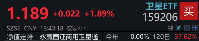 近期,商业航天领域异常活跃,产业拐点已然显现!据最新数据显示,截至13:43,卫星ETF(159206)上涨1.89%,其成分股航天智装更是涨超11%,成为市场焦点。此外,国盾量子也涨超8%,盟升电子、信维通信等个股纷纷跟涨,市场热情高涨。