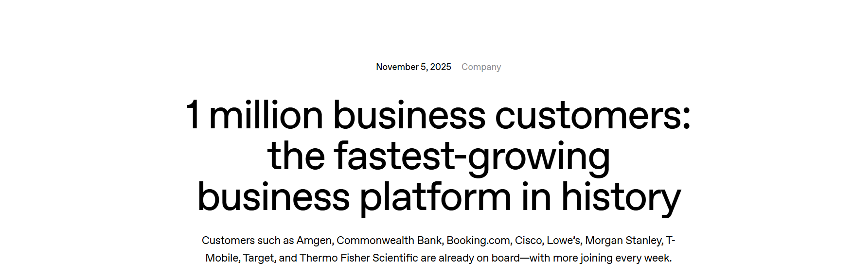 OpenAI还透露,随着ChatGPT每周活跃用户超过8亿人,消费市场的广泛接受也推动企业采纳AI——企业试用周期正变得越来越短、部署阻力越来越小。