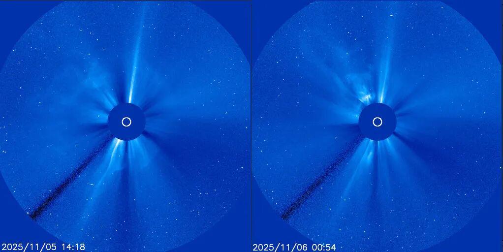 11月6日,中国气象局国家空间天气监测预警中心发布重要消息:受日冕物质抛射(CME)影响,未来三天可能出现中等甚至大地磁暴。据监测,地球静止轨道能量大于10 MeV的高能质子通量将维持在背景水平,而能量大于2 MeV的高能电子日积分通量预计处于低到中等水平。