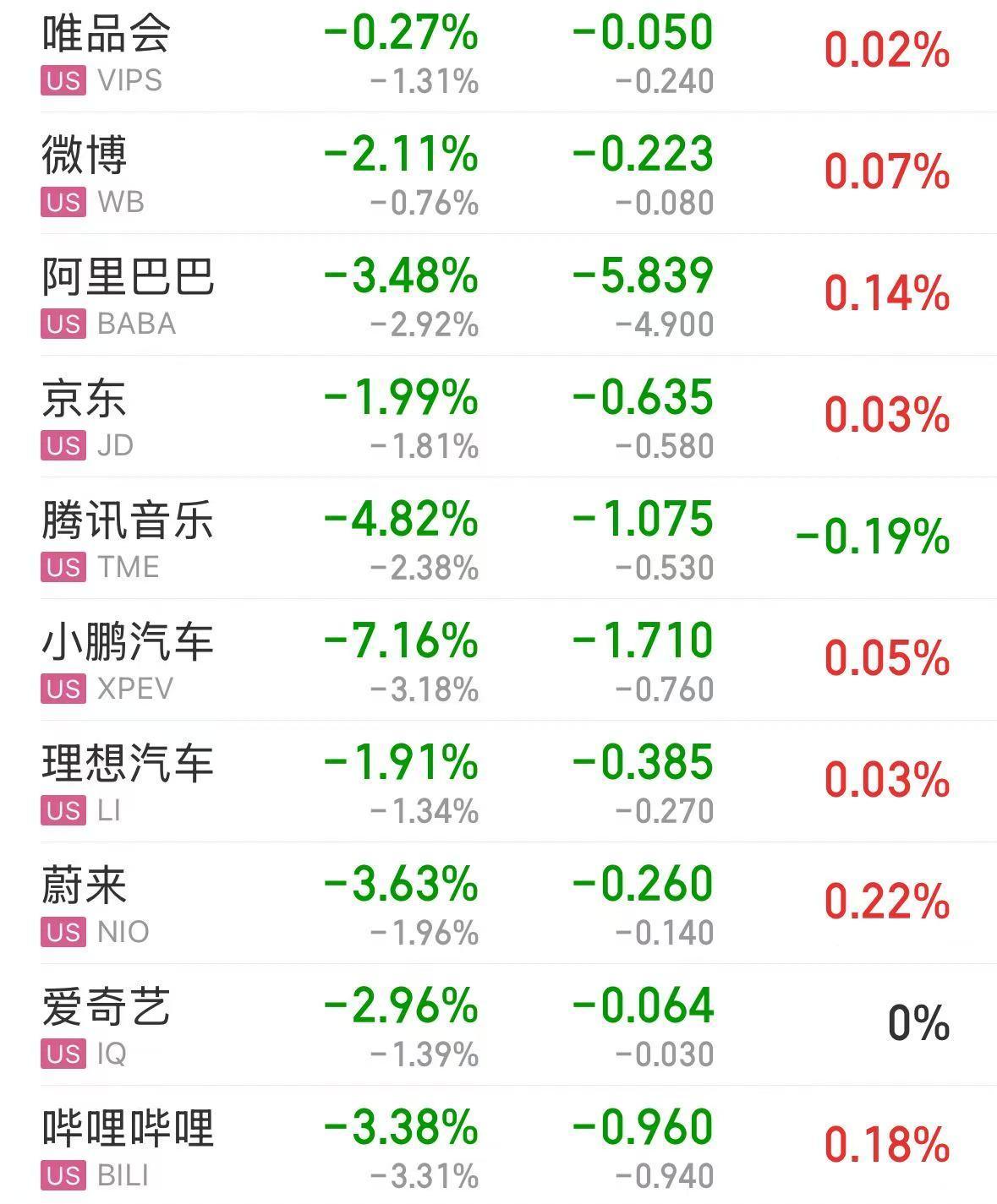 热门中概股同样表现低迷,小鹏汽车跌幅超过7%,阿里巴巴、蔚来、哔哩哔哩跌幅均超3%,微博、爱奇艺下跌超过2%,京东、理想汽车跌幅超过1%。