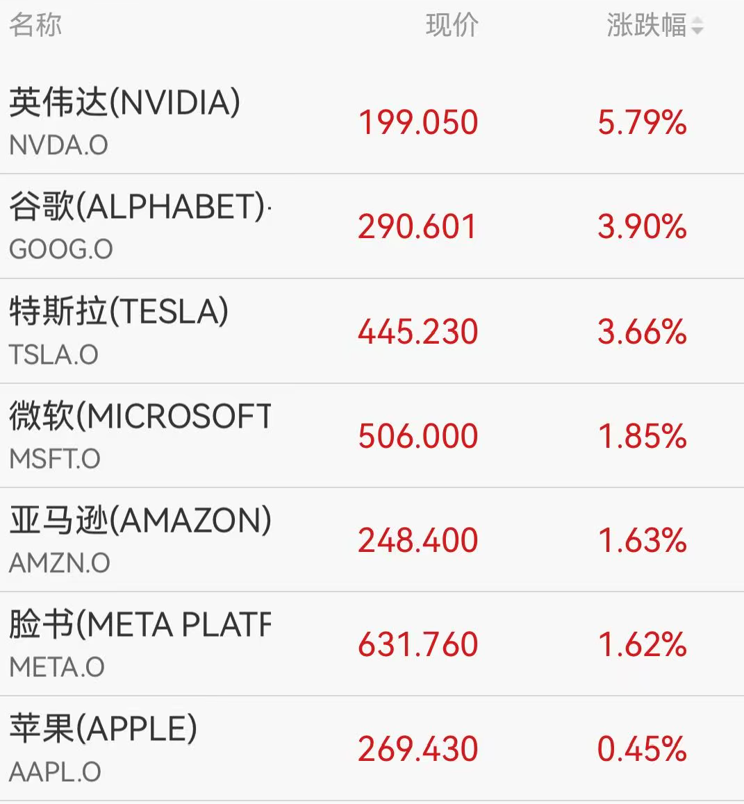 在个股表现方面,大型科技股集体上涨,成为市场的一大亮点。其中,英伟达以近6%的涨幅领跑科技股,谷歌也紧随其后,涨近4%。特斯拉同样表现出色,涨超3%。