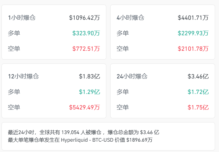 然而,在加密货币市场方面,情况则显得较为波动。截至7:00,比特币涨0.72%,报106049美元。但过去24小时内,全市场近14万人遭遇爆仓,显示出加密货币市场的高风险性。