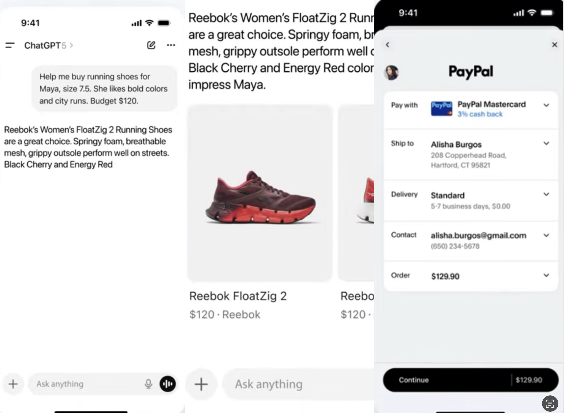 ChatGPT打通购物支付流程。图源:PayPal官方