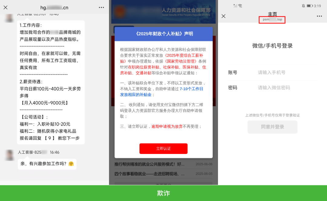 包含兼职刷单、木马文件下载、钓鱼盗号、资金盘、虚假抽奖等欺诈内容的外部链接将被重点打击。典型违规链接示例: