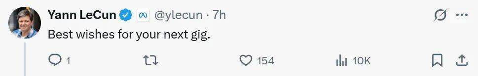 当时,LeCun 还对他表示:「祝你在下一份工作中一切顺利。」