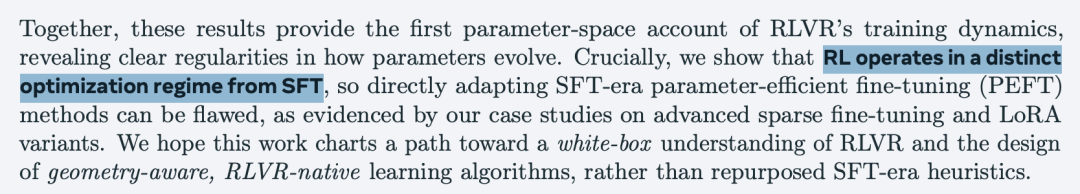 RLVR会在同一个预训练模型的前提下,把更新引导到跨不同运行、数据集和训练方案中的同一类偏好区域。这是一种受模型本身影响的优化偏向。