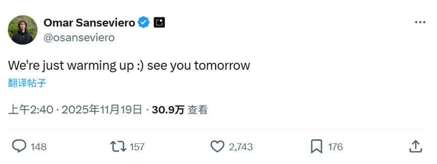 这一突破性成果迅速引发行业震动。OpenAI创始人奥尔特曼公开祝贺:“恭喜谷歌推出Gemini 3!看起来是个很棒的模型。”而DeepMind开发者体验主管Omar Sanseviero更透露,此次发布仅是“热身”,更多惊喜即将到来。