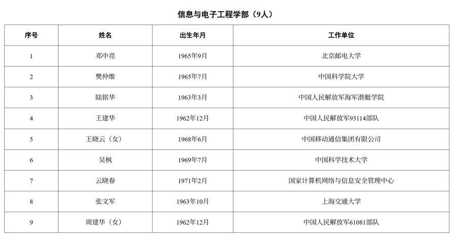 从学科分布来看,数学物理学部新增14人,化学部新增11人,生命科学和医学学部新增13人,地学部新增9人,信息技术科学部新增11人,技术科学部新增15人。新当选院士的平均年龄为57.2岁,其中年龄最小者44岁,年龄最大者66岁,60岁(含)以下的占比达67.1%。值得关注的是,本次增选中有5位女性科学家成功当选,院士队伍的年龄结构和性别比例进一步优化。