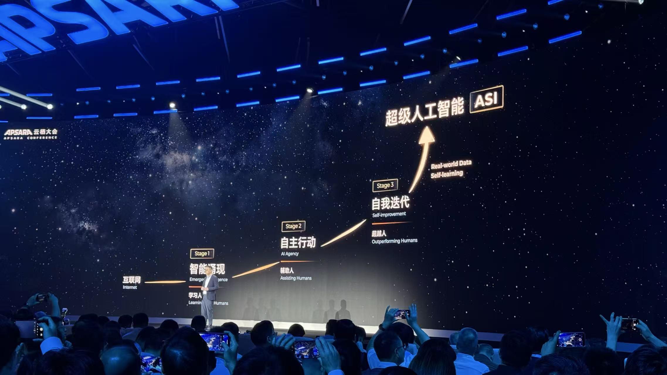 在9月24日的2025年云栖大会上,吴泳铭明确表示:“人工智能的终极目标是发展出能自我迭代、全面超越人类的超级人工智能ASI。”他指出,当前世界正经历一场由人工智能驱动的智能化革命,其影响力将远超工业革命与信息革命。