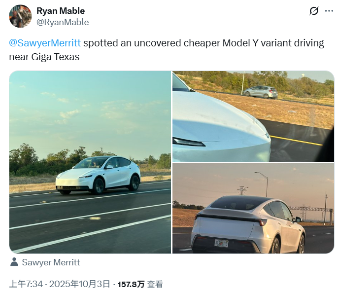 社交媒体上,也有美国网友爆料称,在特斯拉得州工厂附近目击到了没有覆盖伪装的“平价版Model Y”。这一消息无疑为之前的猜测增添了更多可信度,也让消费者对即将揭晓的新车充满了期待。