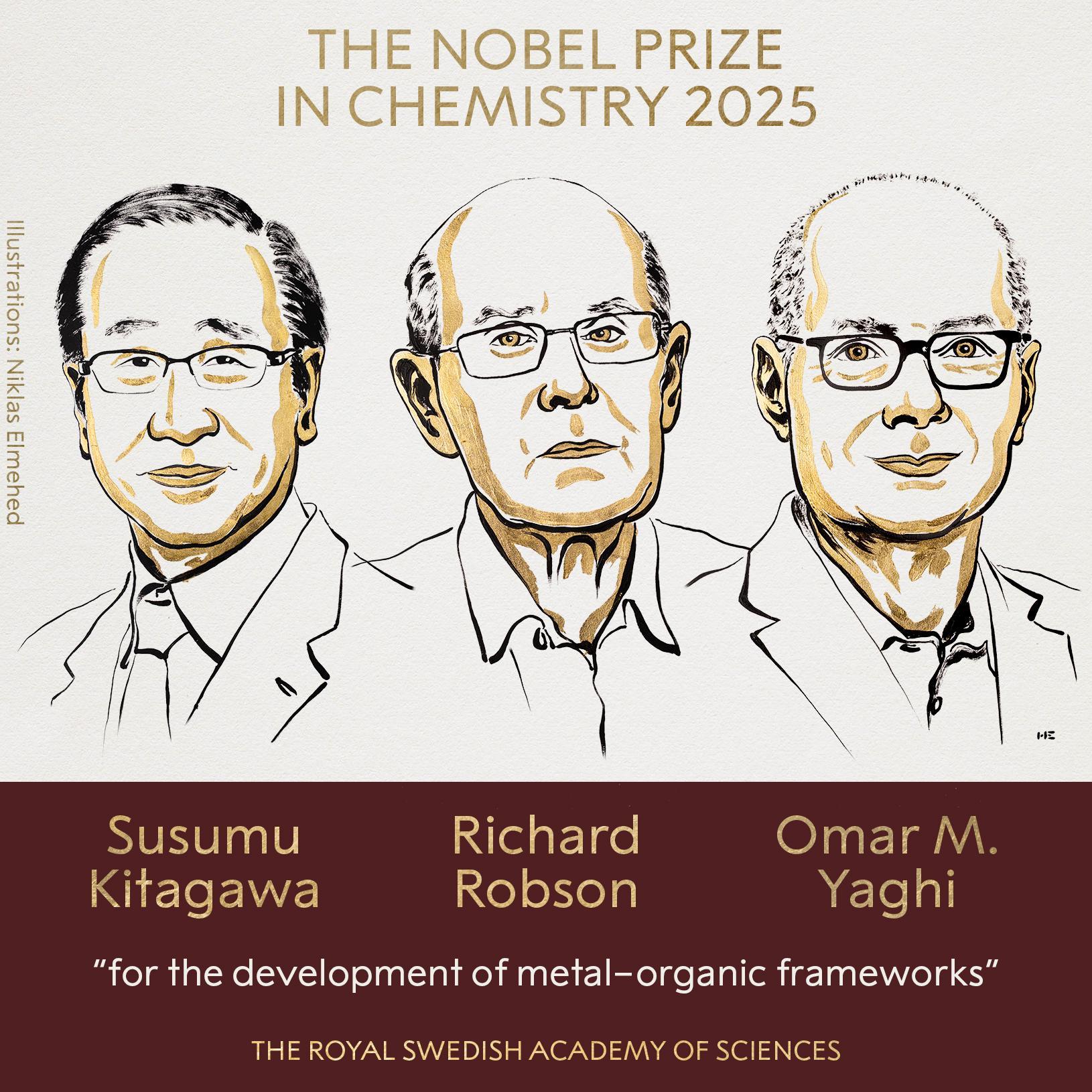 当地时间10月8日,瑞典皇家科学院正式宣布,将2025年诺贝尔化学奖授予三位杰出科学家:北川进(Susumu Kitagawa)、理查德·罗布森(Richard Robson)和奥马尔·M·亚吉(Omar M. Yaghi)。这一奖项旨在表彰他们在“金属有机框架领域的发展”中所作出的开创性贡献。