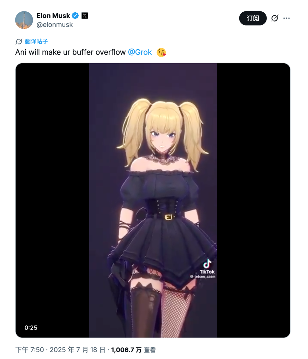马斯克宣传Grok虚拟女友Ani