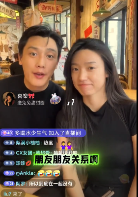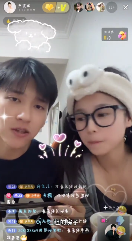 两人去年9月直播时官宣了恋情,从此就更不拿大家当外人了,常常开直播,每次都是很自然的情侣日常,有时在吃饭有时在唠嗑。