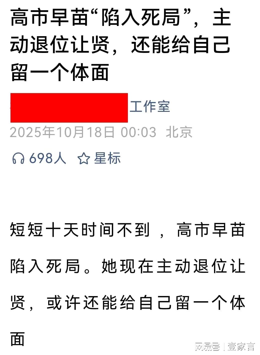 当高市早苗正式就任日本首相时,那些曾预言其失败的专家大V或许正在删除旧文、修改观点。但历史不会遗忘这些误判,公众更需要的是能穿透信息迷雾、提供真正价值的分析者——而非跟风炒作的'预言家'。