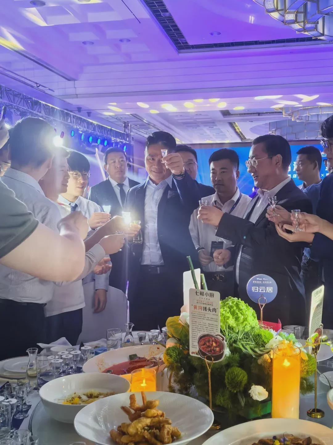 晚宴前,他还化身主厨给大家现炒宿迁名菜“黄狗猪头肉”,一边炒菜一边cue其他商界大佬。