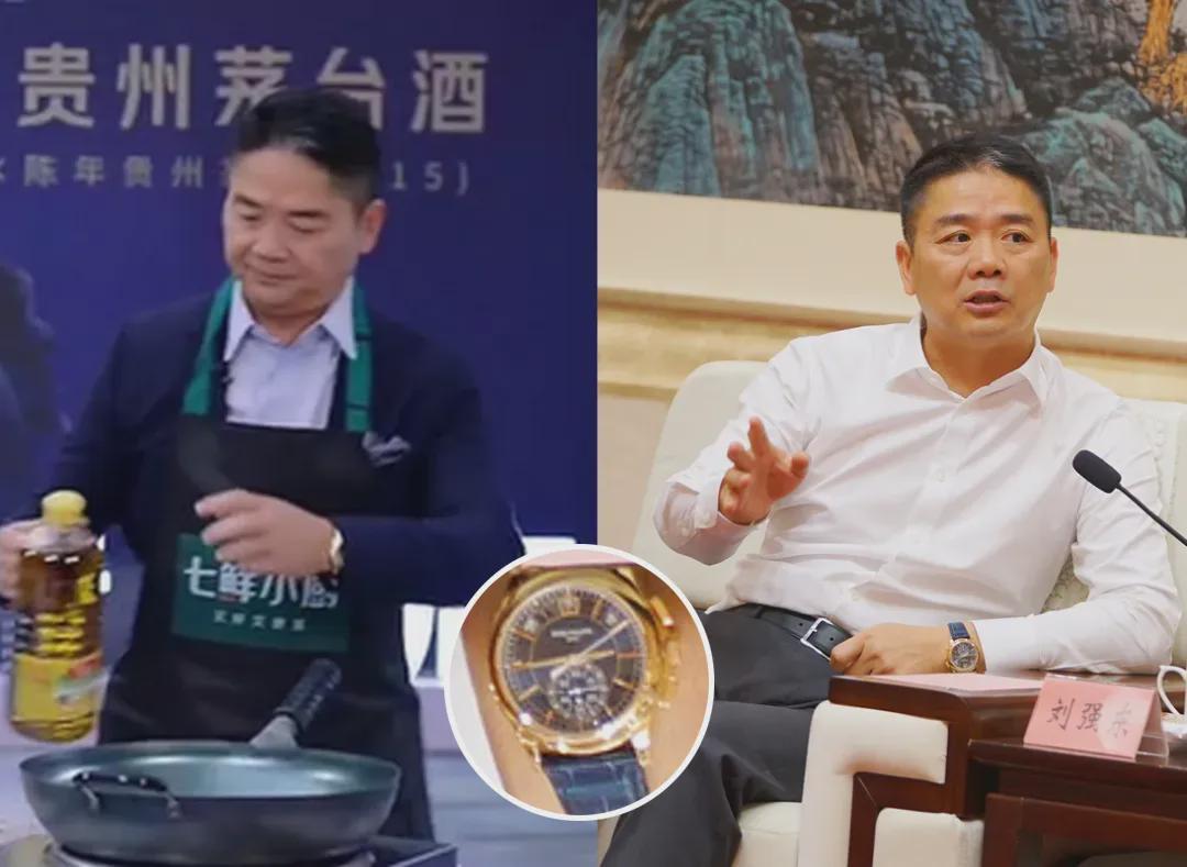 不过最吸引范主目光的,还属刘强东腕间那块金表,细看非常像他前阵子刚戴过的百达翡丽复杂功能时计系列5905R-010,感觉是这两年新买的表。炒菜这么大油烟依旧没摘下来,也是任性。