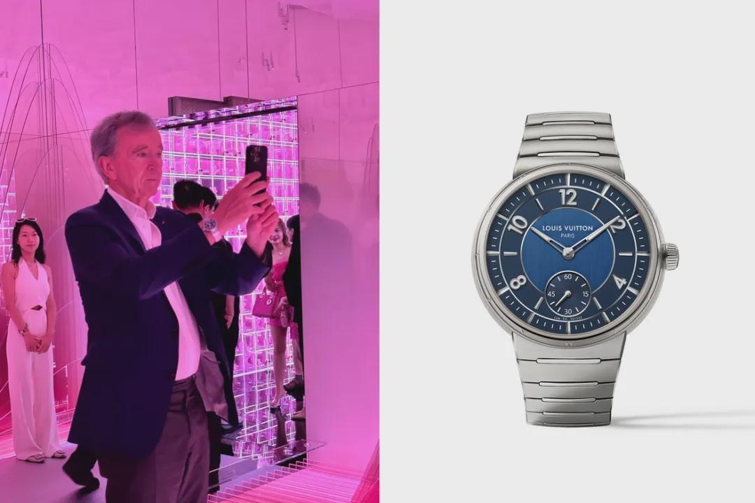 有的人就像人形广告牌,只戴自家腕表。像是这两天LVMH集团老板阿尔诺来上海,就戴了LV Tambour腕表,低调给主管LV高级制表的小儿子带货。之前上手泰格豪雅、百达翡丽PPT,也是支持另外两个儿子的事业。