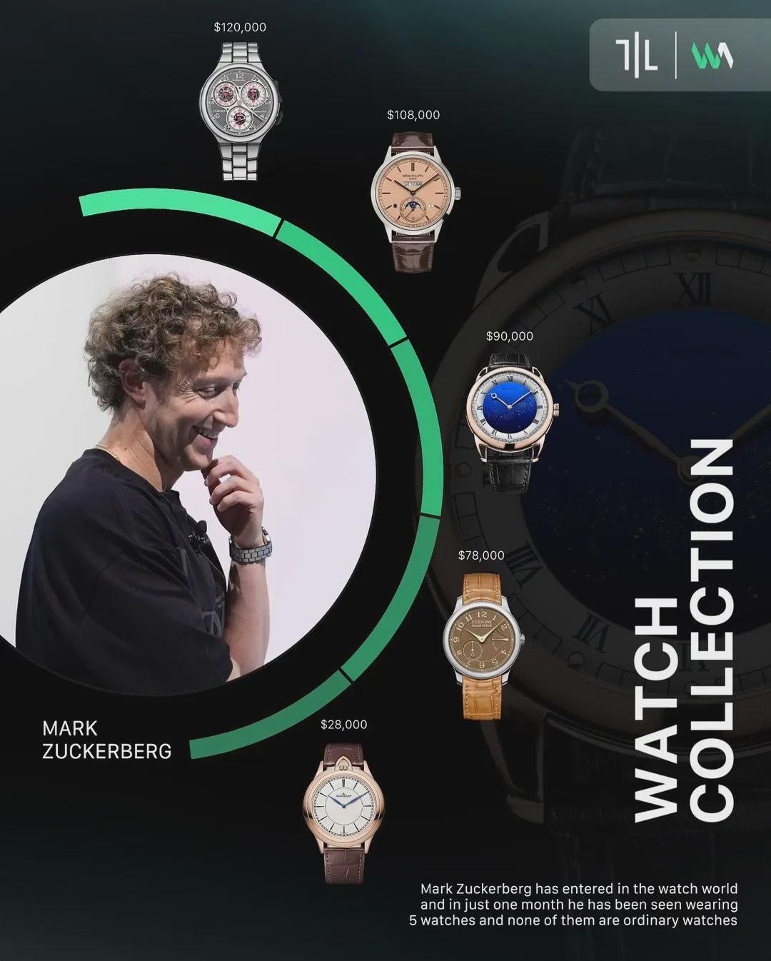 有的大佬为打造人设,每周都要秀一块新表,代表人物当属之前从来不戴表、如今励志当表哥的扎克伯格,2个月陆续入手了10块顶奢壕表。