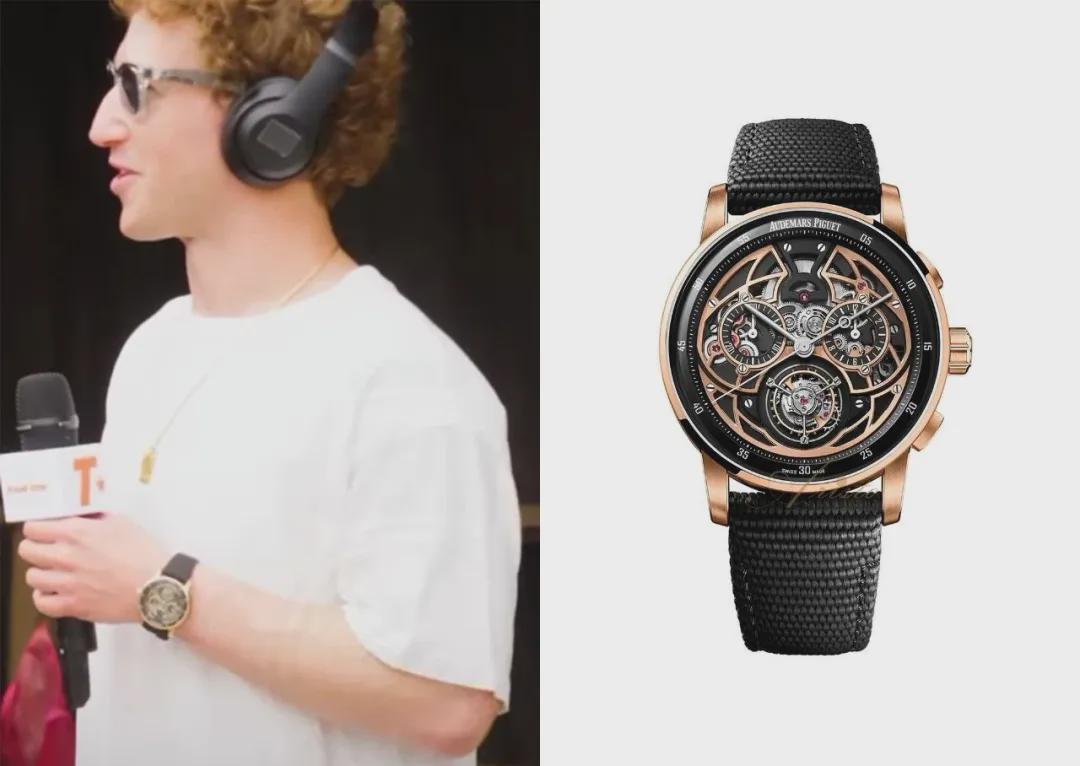 紧接着又秀出一枚爱彼CODE 11:59自动上链飞行陀飞轮计时码表,黑金外形十分酷炫,限量50枚,价值约20万美元,也是真懂行的表哥才会拥有的高阶收藏款。