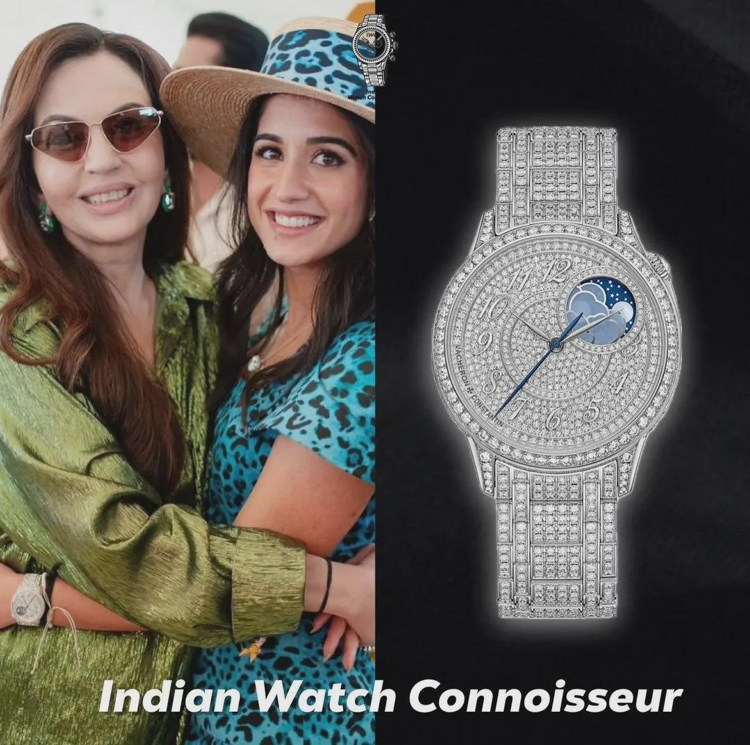 小儿媳拉迪卡上手过江诗丹顿伊灵女神8016F/127G-B499,满钻+月相看起来优雅奢华。