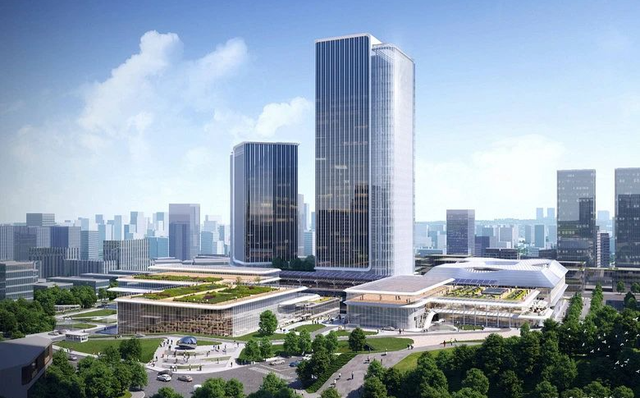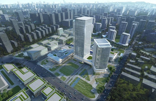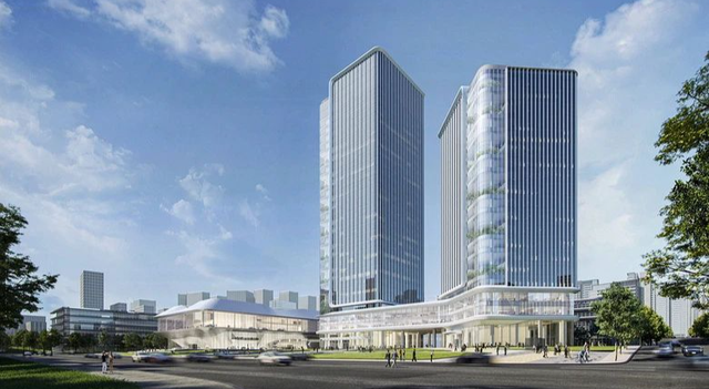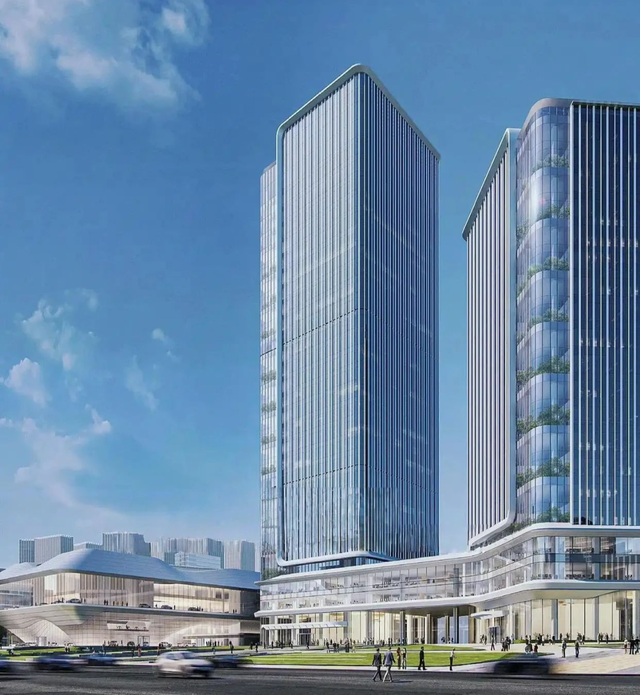 两栋塔楼分别高达140米与100米,矗立于场地北侧,视野开阔,未来将成为鲤鱼池片区天际线的标志性建筑。