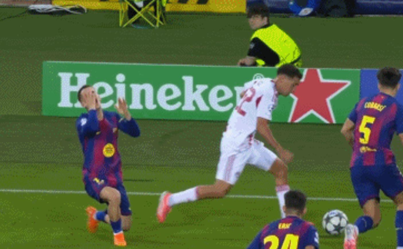 然而比赛第57分钟出现转折点。奥林匹亚科斯球员赫泽与巴萨中场卡萨多争抢时,卡萨多先有抱人动作但赫泽未倒地。随后卡萨多突然捂脸倒地,主裁判竟向赫泽出示第二张黄牌将其罚下。慢镜头回放显示,赫泽并未有明显犯规动作。