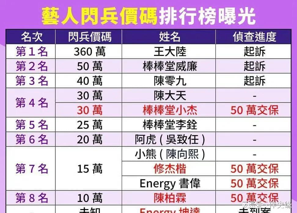 最让人震惊的是,几人贿赂的金额竟然大相径庭。同样是伪造病历证明,陈柏霖仅花了10万,修杰楷花了15万,棒棒堂成员小杰也只花了7万,而王大陆却整整掏出了360万!这巨大的差距,让网友们纷纷猜测背后的原因。