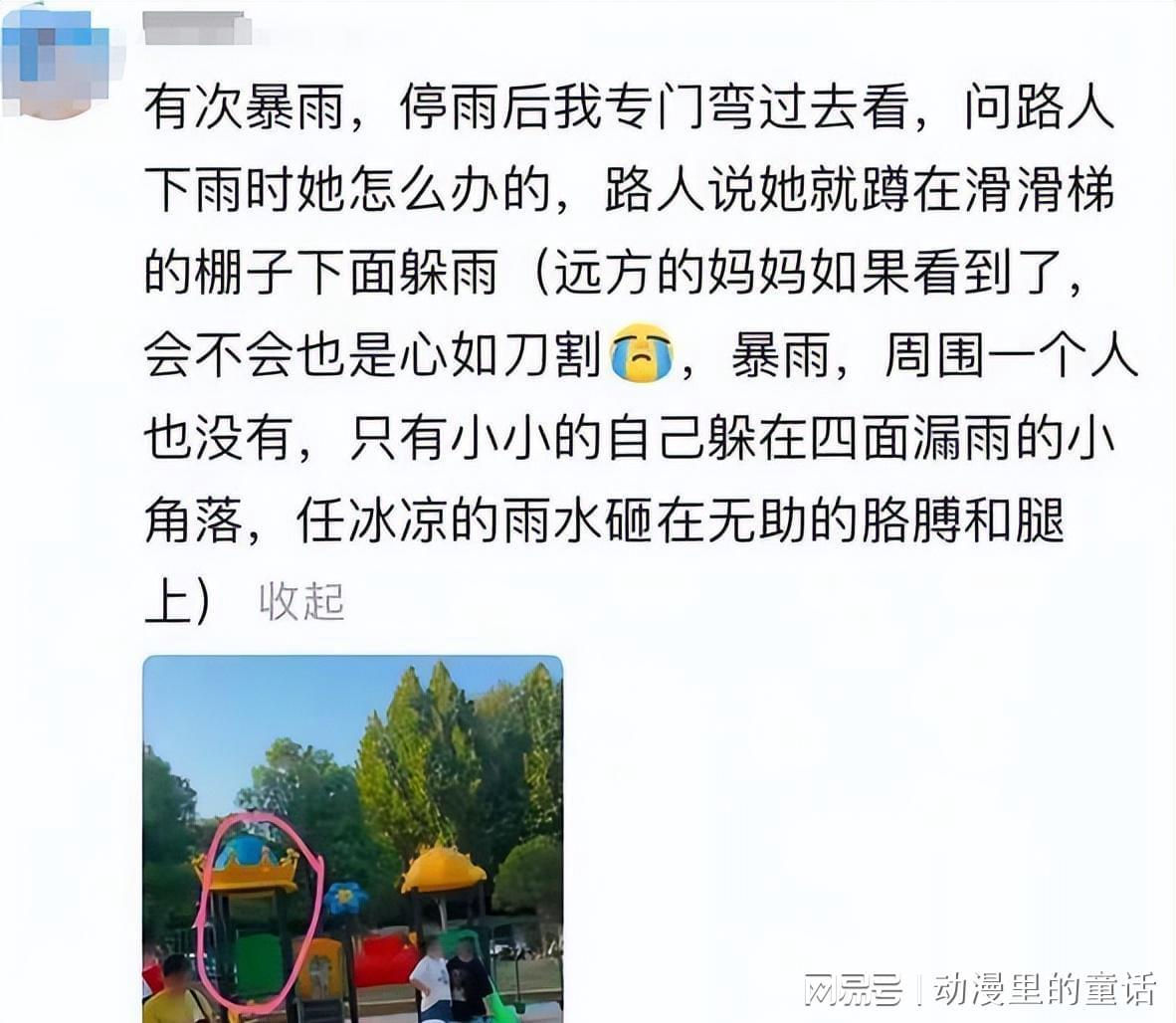 据目击者描述,一名男子多次在公园湖边看到同一个小女孩。起初以为是家长暂时离开,没想到这个穿着脏污公主裙的5岁女孩,竟是被父亲故意遗弃在此。饿了只能吃剩饭,困了蜷缩在公共长椅上,下雨天只能躲在滑梯下瑟瑟发抖。