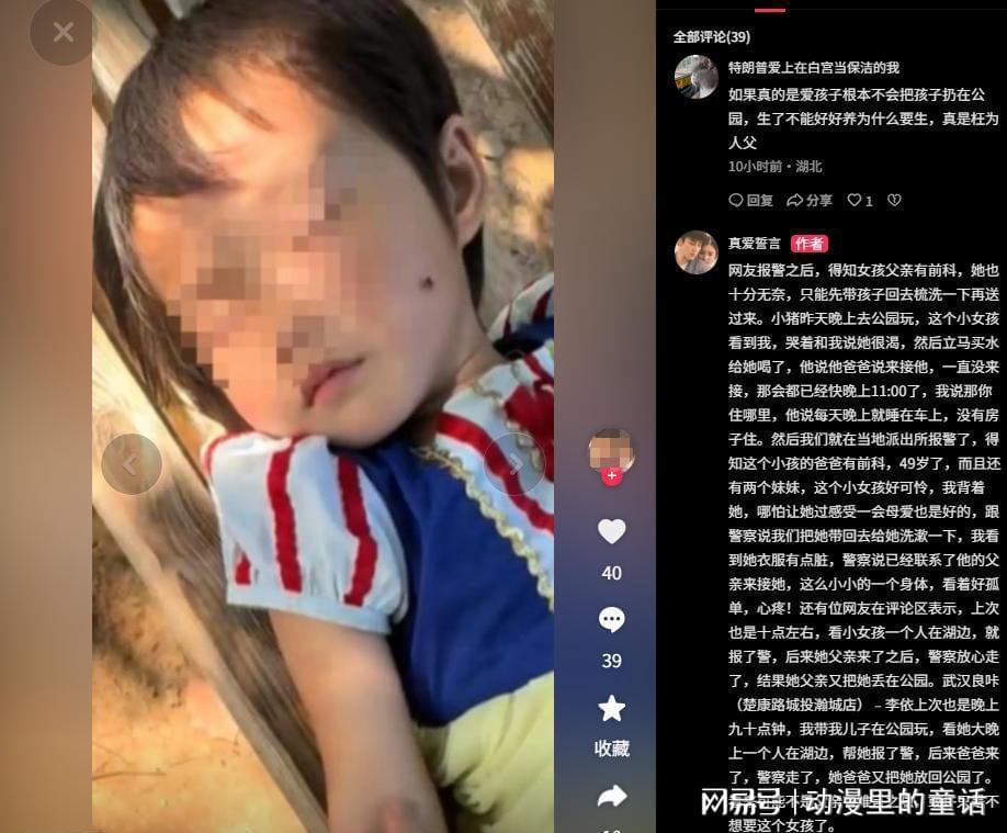 9月17日,武汉一位网友分享了偶遇5岁女孩青青的震撼经历,引发网友集体心疼与愤怒。