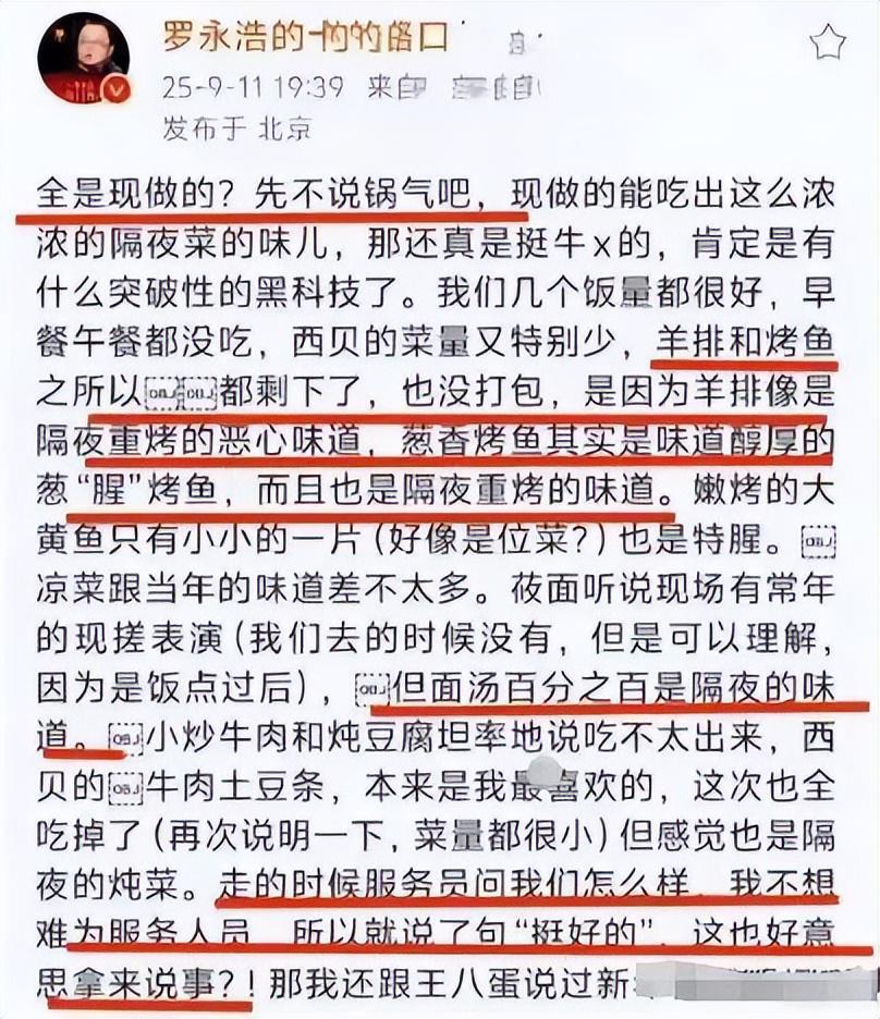 罗永浩在直播里说得透彻:"我不反对预制菜,反对的是卖预制菜伪装成现做的。" 他拿着西贝菜单算账:"同样的价格,我知道是预制菜可以接受,被蒙在鼓里就觉得恶心。" 这种 "价格落差感" 成了网友愤怒的导火索 —— 西贝人均消费百元以上,大家花这个钱,买的就是 "新鲜现做" 的体验感。