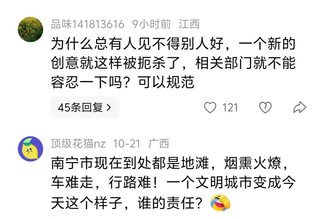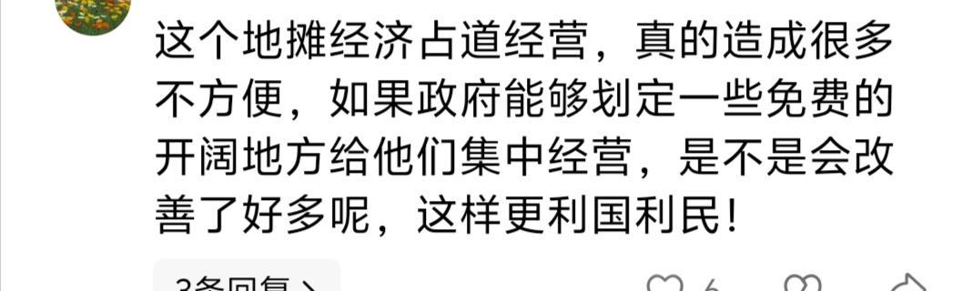 还有网友提出建设性意见:“政府可以划定免费经营区域,既方便摊主经营,又避免占道问题。”针对地摊经济与城市管理的矛盾,网友普遍呼吁建立更完善的规范机制。