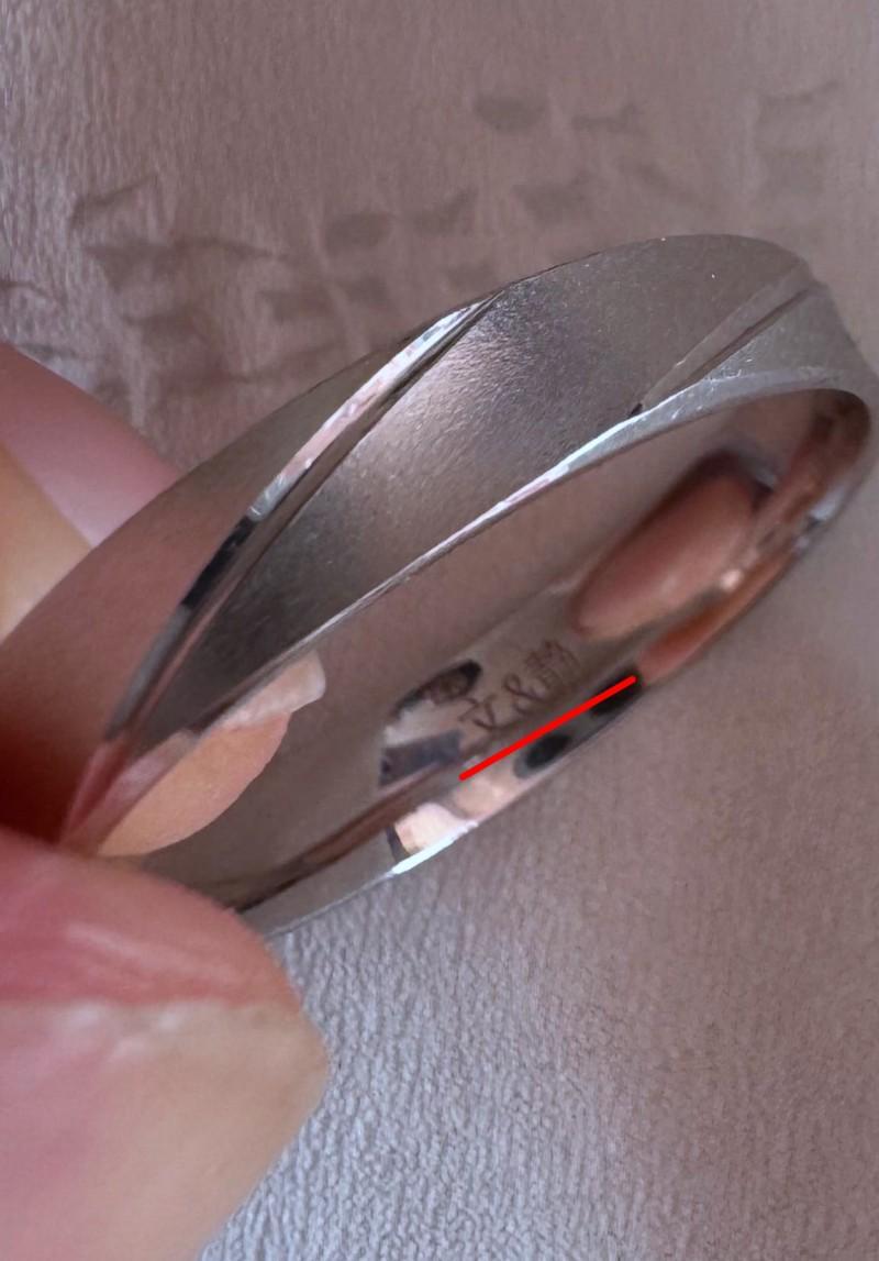 项先生称,他购买的婚戒上刻有“文&静”字样(受访者供图)。他表示:“若是普通商品戒指,我不会过多计较,但婚戒寓意特殊,这种情况让我无法接受。”项先生已向商家提供婚礼佩戴婚戒的相关证据,并在与客服沟通时得知,对方先承认是工作人员操作失误,后又改口称戒指是“报废品”。这让他更加气愤:“报废品怎么会流入市场?”