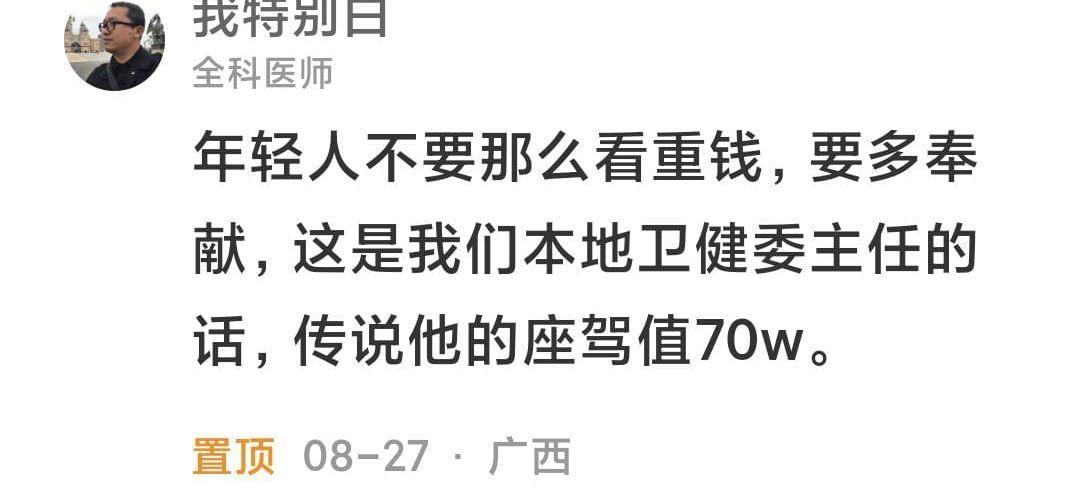 面对医生群体的生存困境,部分卫健委官员曾表示'年轻人不要看重钱,要多奉献'。然而,有同行质疑称:'有时间送外卖说明工作不饱和,全科懒散谁也救不了。'这种观点引发了关于医生工作强度与收入匹配度的激烈讨论。