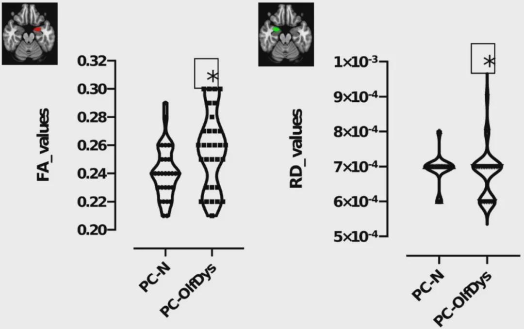 更令人不安的是,嗅觉丧失持续时间越长,左侧杏仁核的结构变化越显著(MD和AD值升高),提示大脑可能因长期感知缺失而发生不可逆重塑。