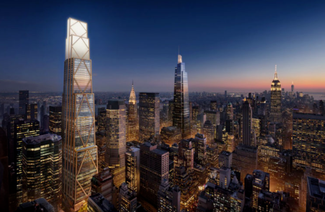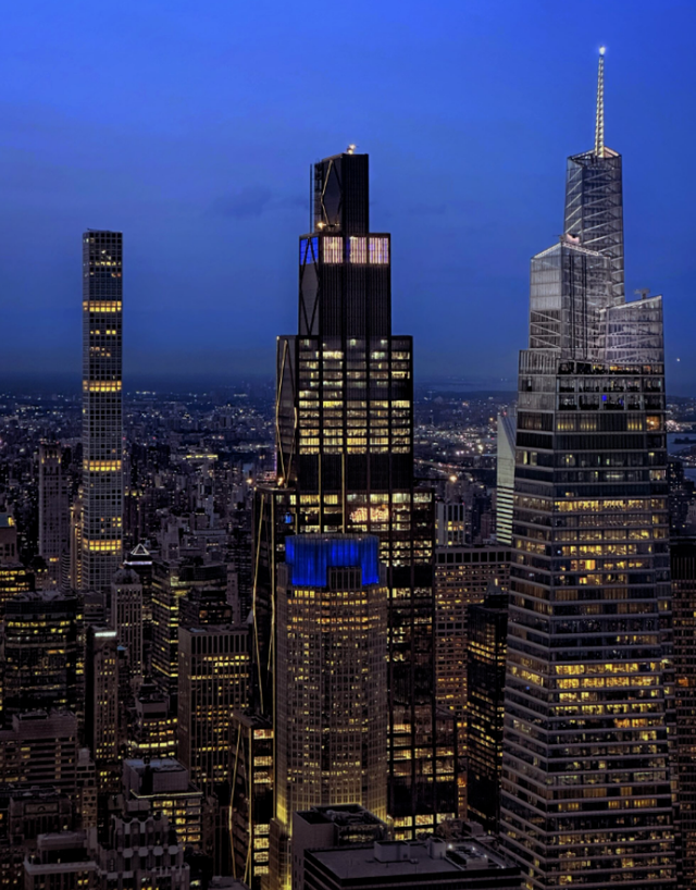 可持续理念贯穿项目全周期:原建筑拆除后97%的材料实现回收再利用,施工期间创造8000余个工会岗位。内部空间采用阶梯式退台设计,自下而上逐渐收缩的体量形成优雅尖顶,既延续纽约经典摩天楼韵律,又通过现代几何语言塑造独特天际线。