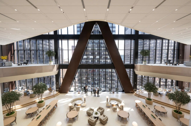 该项目已获得LEED铂金级认证预认证和WELL健康建筑认证,从空气质量到声学设计均达到国际顶尖标准。摩根大通全球地产主管表示:「这不仅是座办公楼,更是对未来城市生活的提案——当建筑成为有机体,就能真正实现人、空间与环境的共生。」