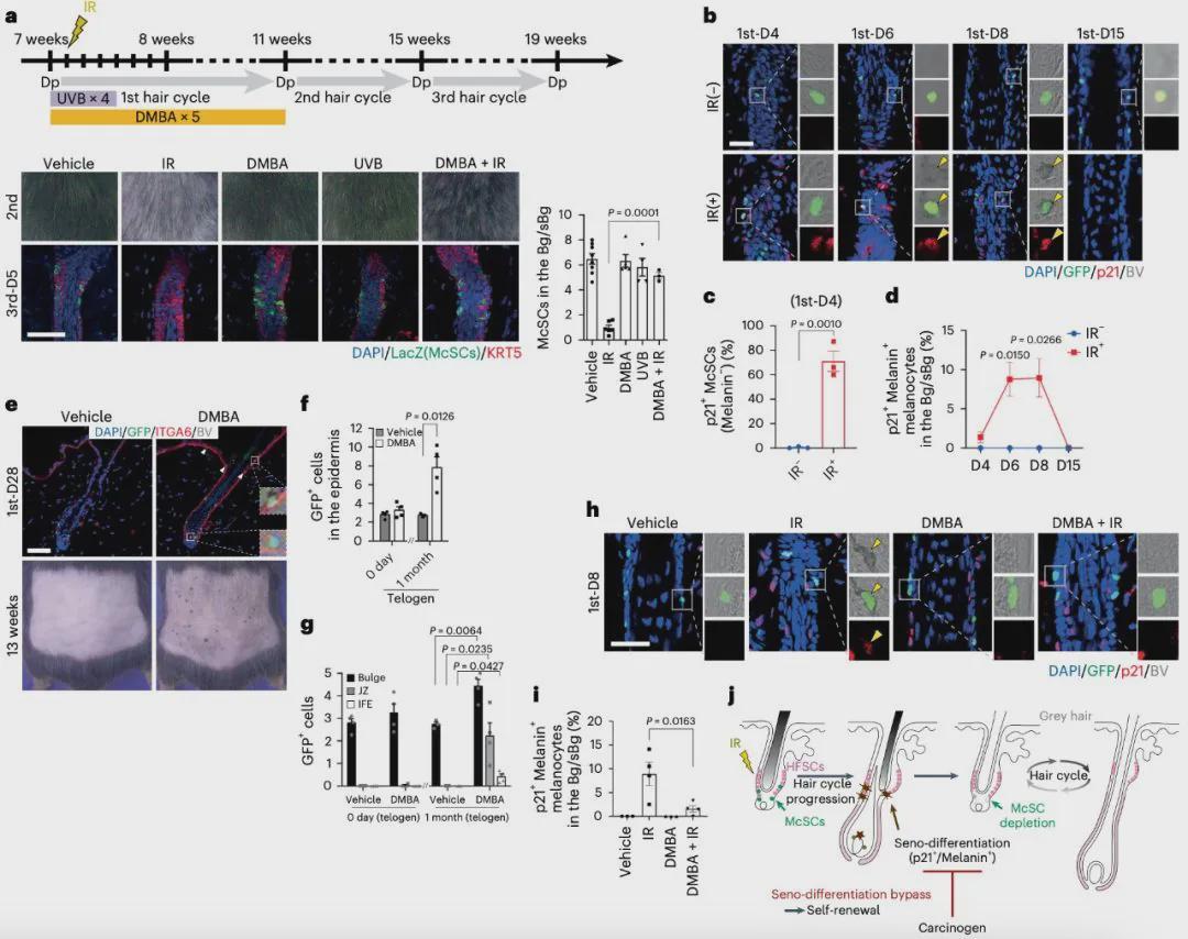 当McSCs检测到不可逆的DNA损伤时,会触发「衰老分化」程序:放弃干细胞身份,转化为普通色素细胞并迅速被免疫系统清除。这一过程虽然导致头发变白,却避免了受损细胞持续复制、最终癌变的风险。