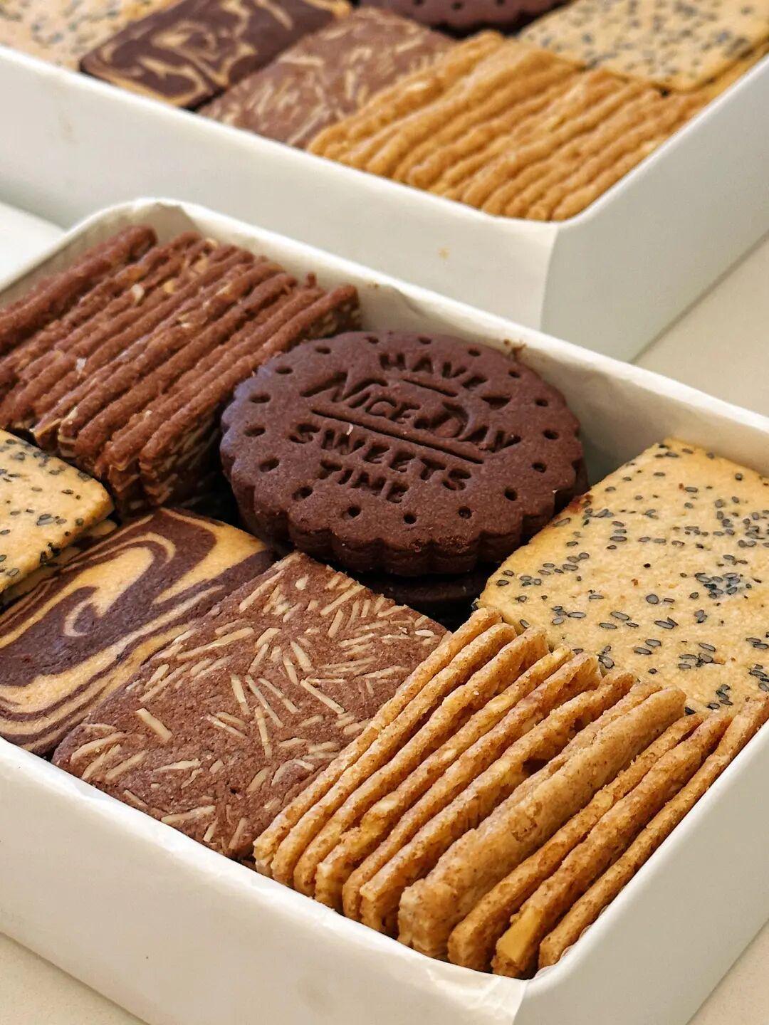 研发过程中,团队尝试了蛋糕、甜点、蛋挞等多种形式,最终选定曲奇作为最佳载体。经过反复调试,确定了五种经典口味组合: