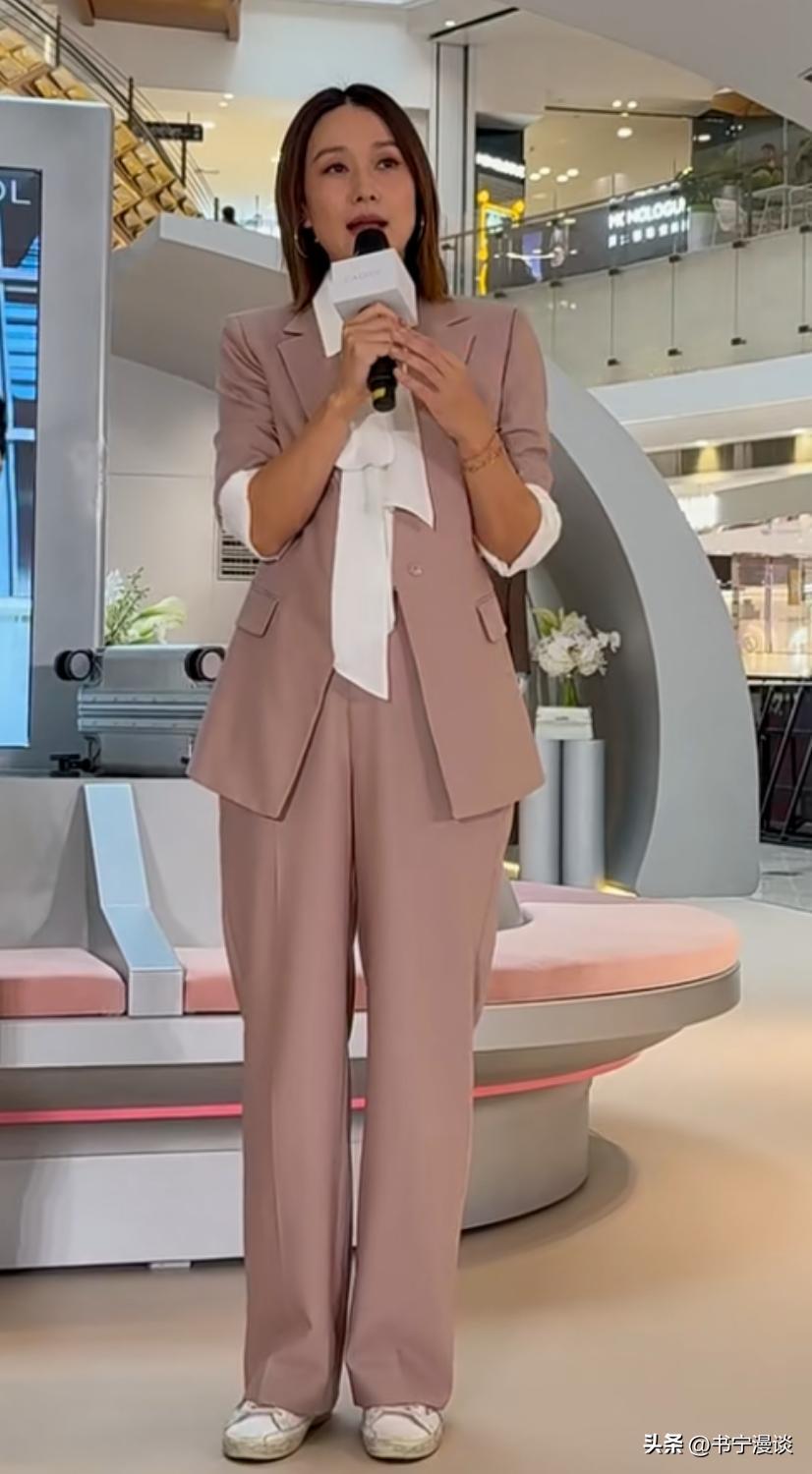 9月19日,马伊琍现身上海大丸百货,为其代言的高端女装品牌站台宣传。当天她选择了一套裸粉色西装套装,内搭系带白衬衫的组合,却意外引发了关于时尚品味的争议。这套被网友戏称为"微商女强人"风格的穿搭,在高清镜头下显得与当下潮流格格不入,甚至有观众误以为这是多年前的活动影像。