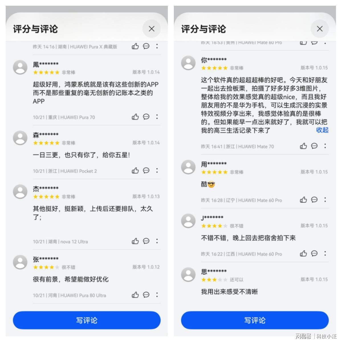 在评论区,用户们已经玩“疯”了。大家纷纷晒出自己拍摄的3D影像,直呼“效果超级nice”、“这才是鸿蒙该有的创新APP”。这种将现实空间复刻下来的感觉,确实让人感到“6到飞起”。