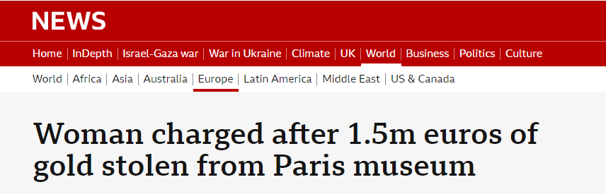 中国女贼夜闯巴黎博物馆,三小时盗走百万黄金