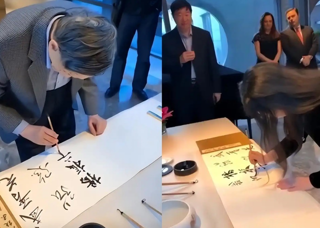 一行人在现场题字,杨振宁的精神头很好,外界还都夸赞他保养得好。
