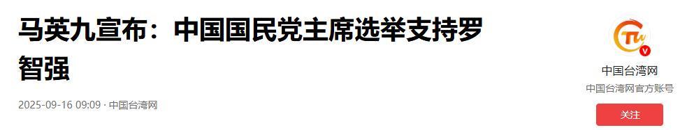 参考信源:中国台海网 2025-9-16 马英九宣布:中国国民党主席选举支持罗智强