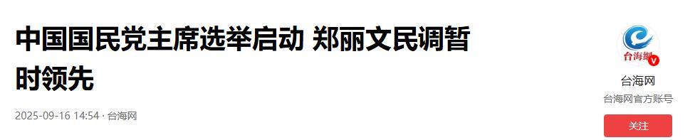 台海网 2025-9-16 中国国民党主席选举启动 郑丽文民调暂时领先
