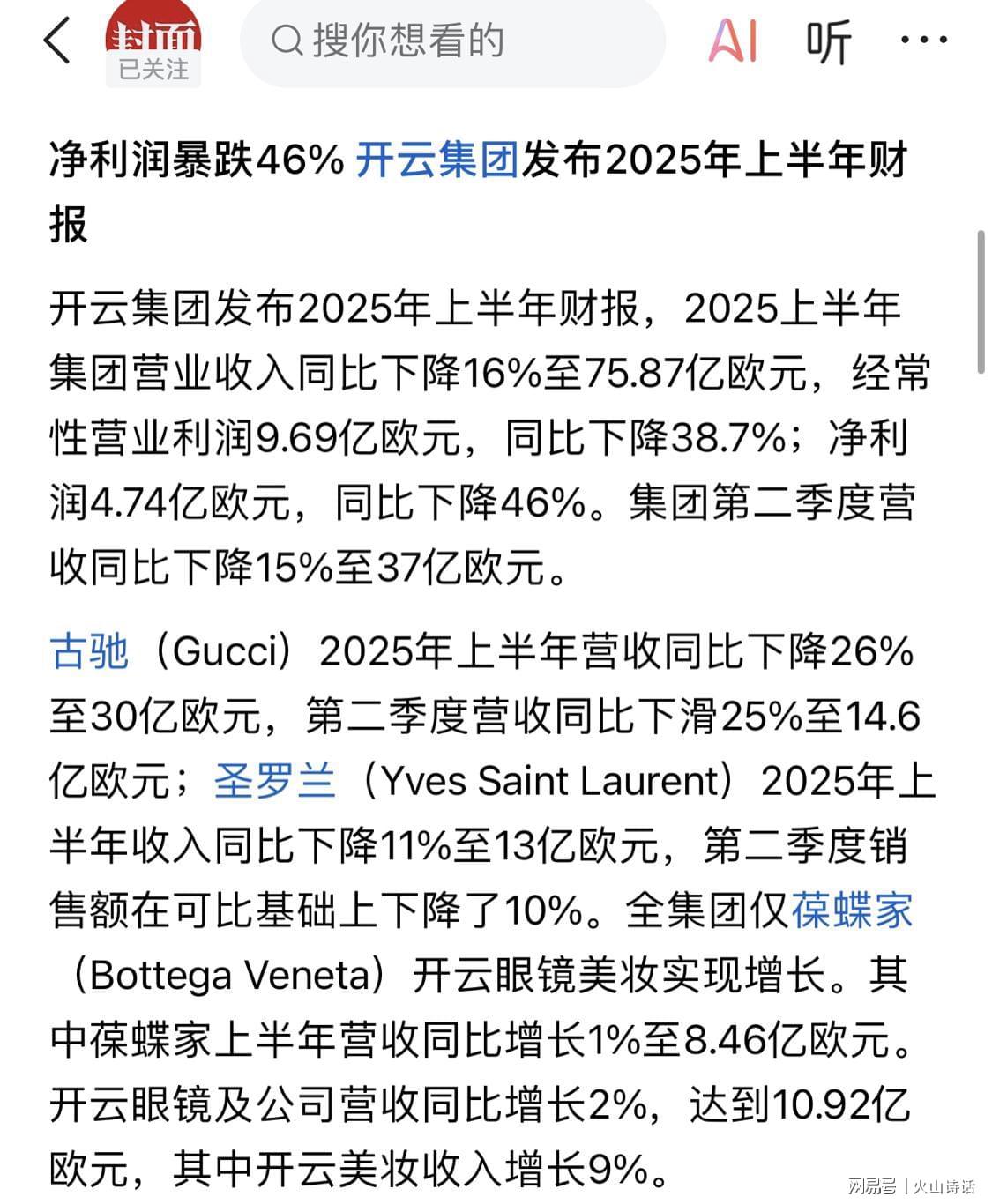 值得一提的是,据媒体报道,圣罗兰2025年上半年及各季度营收呈现同比下滑态势。上半年收入同比下降11%至13亿欧元,第二季度销售额下降10%,第一季度营收为6.79亿欧元,同比下降9%。