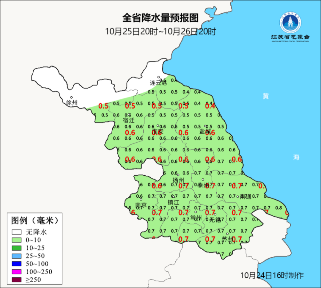 对于江苏地区而言,明天全省将迎来一次弱降水过程。而到了26—27日,全省则将以多云天气为主。