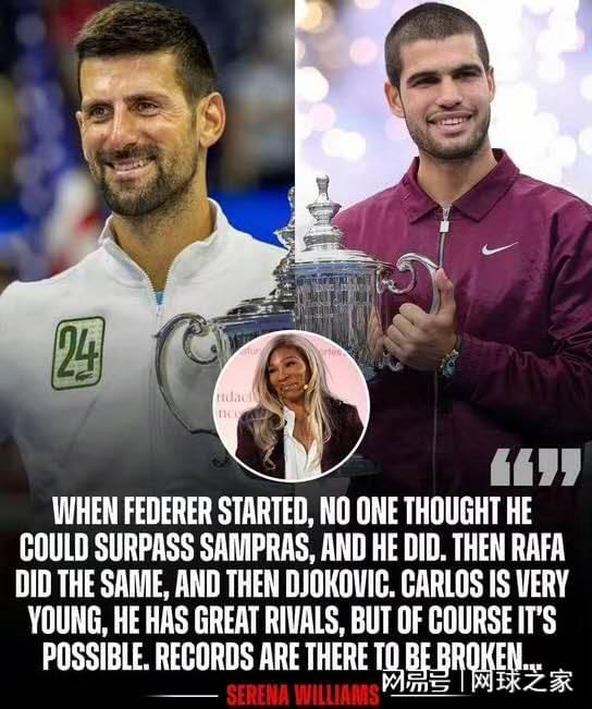 当被问及阿尔卡拉斯能否超越德约科维奇的纪录时,小威表示:“一切皆有可能。纪录的存在就是为了被打破,卡洛斯还很年轻,尽管对手强大,但他完全有机会创造历史。”她以费德勒、纳达尔和德约科维奇为例,强调网坛纪录的更迭从未停止:“费德勒刚出道时没人认为他能超越桑普拉斯,但他做到了;纳达尔和德约随后也刷新了纪录。”
