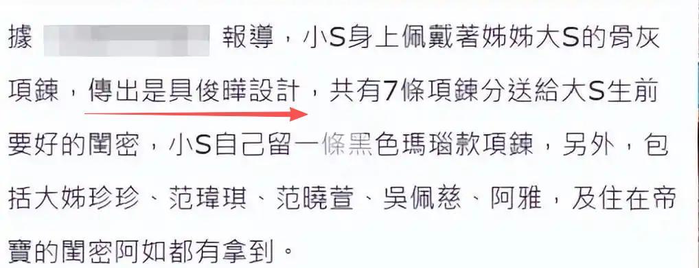 当记者问到这个项链时,小S毫不避讳地说“姐姐的一部分在里面”。