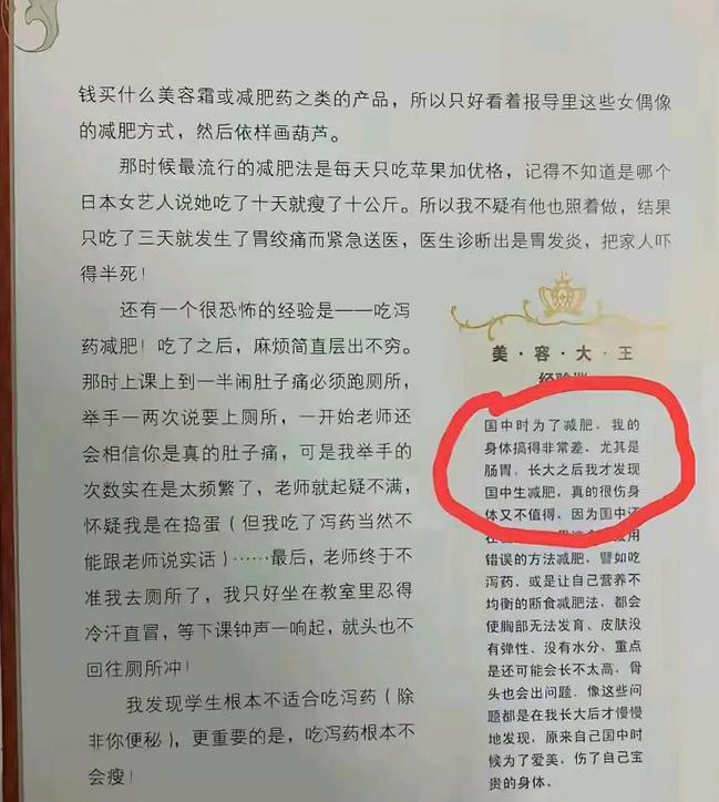 所以长大后的她才感慨:“国中生减肥,真的很伤身体又不值得。”